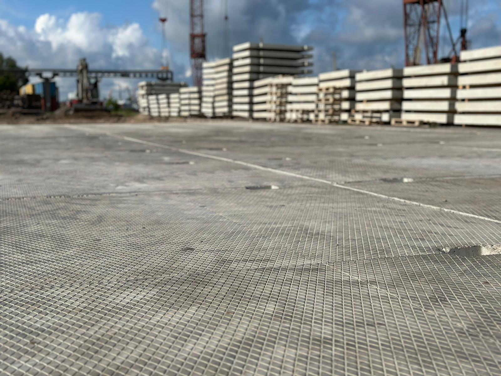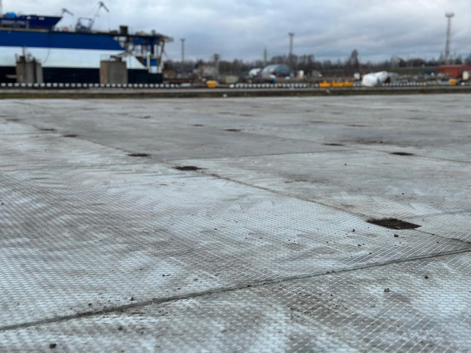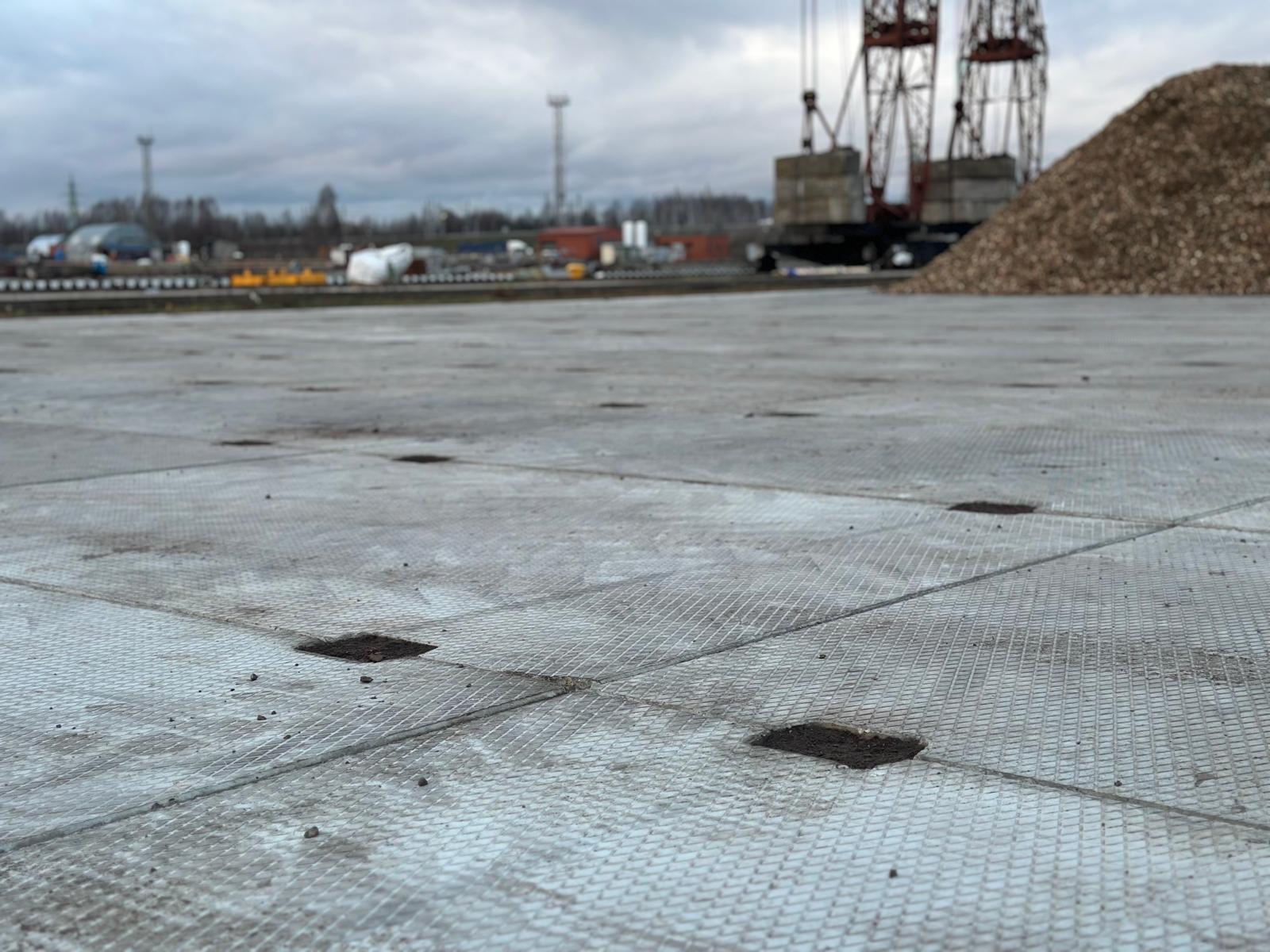 Industriālās plātnes no LAT SLABS izmantotas loģistikas un kraušanas zonā Rīgas Brīvostas teritorijā.