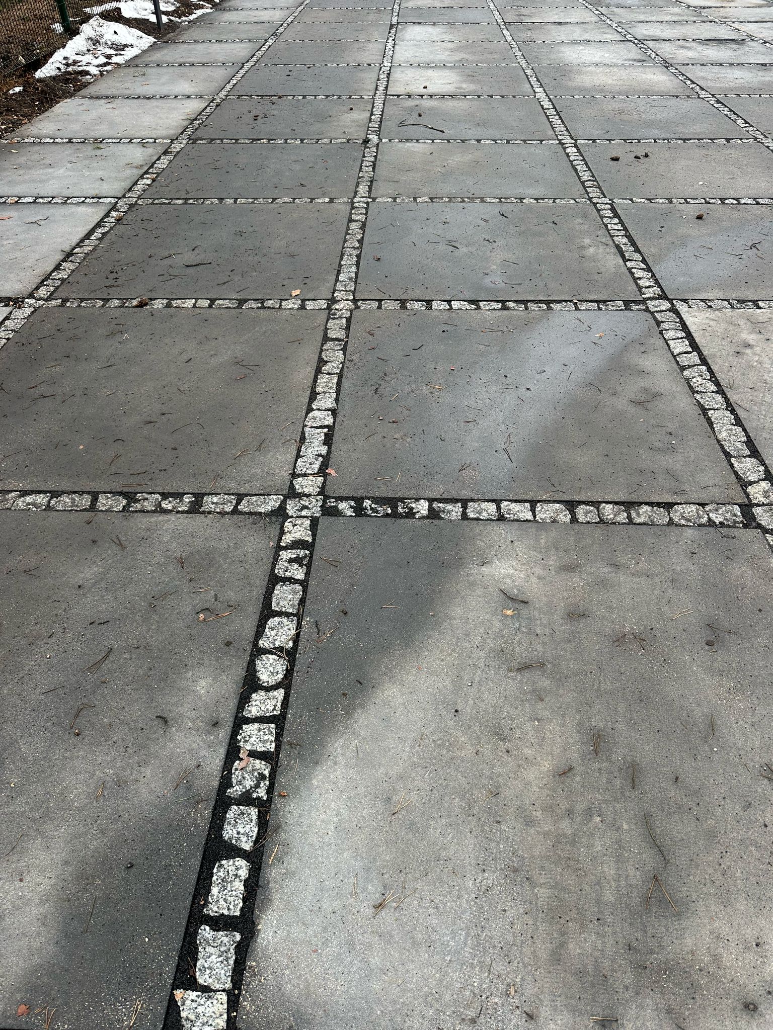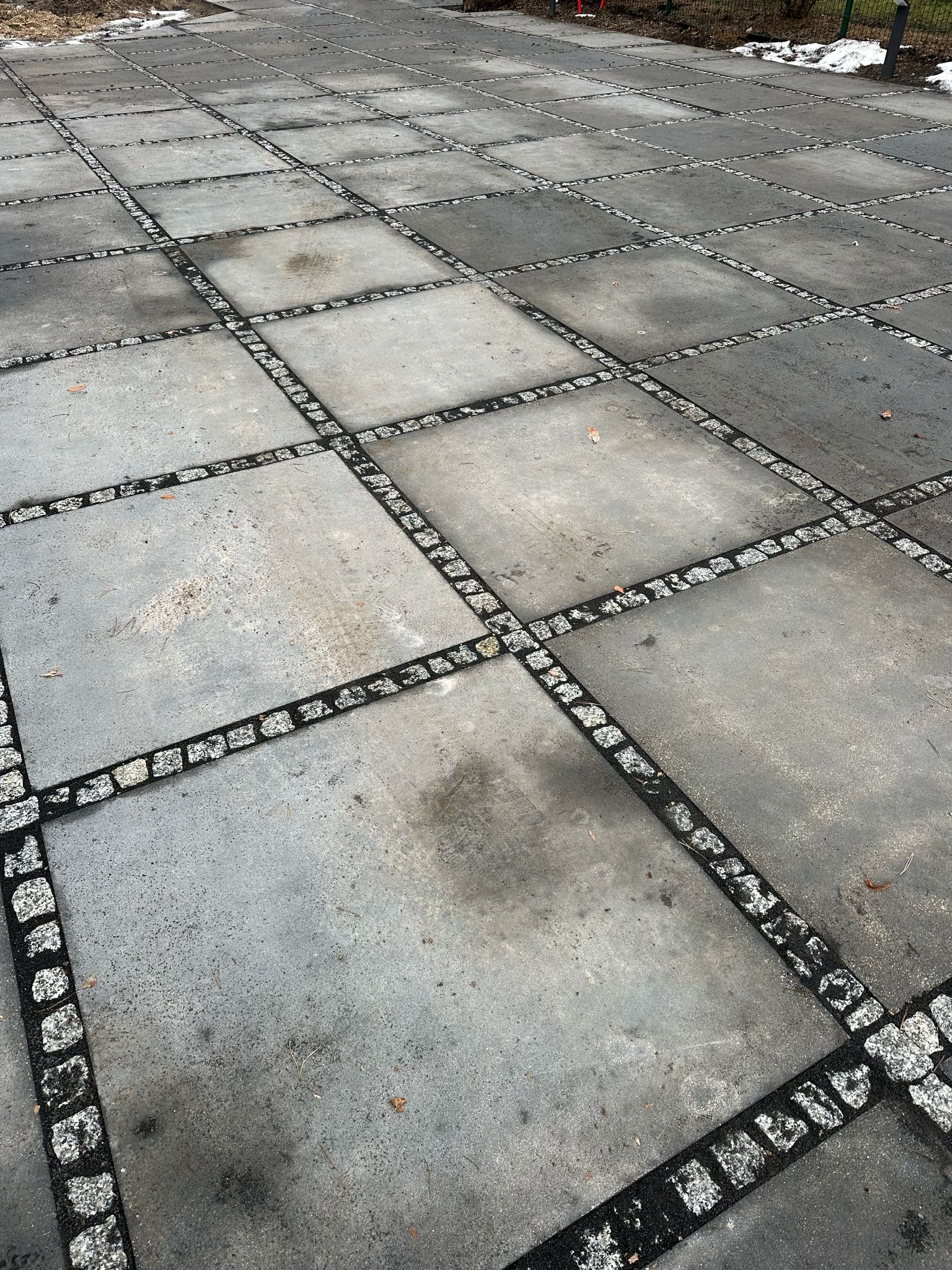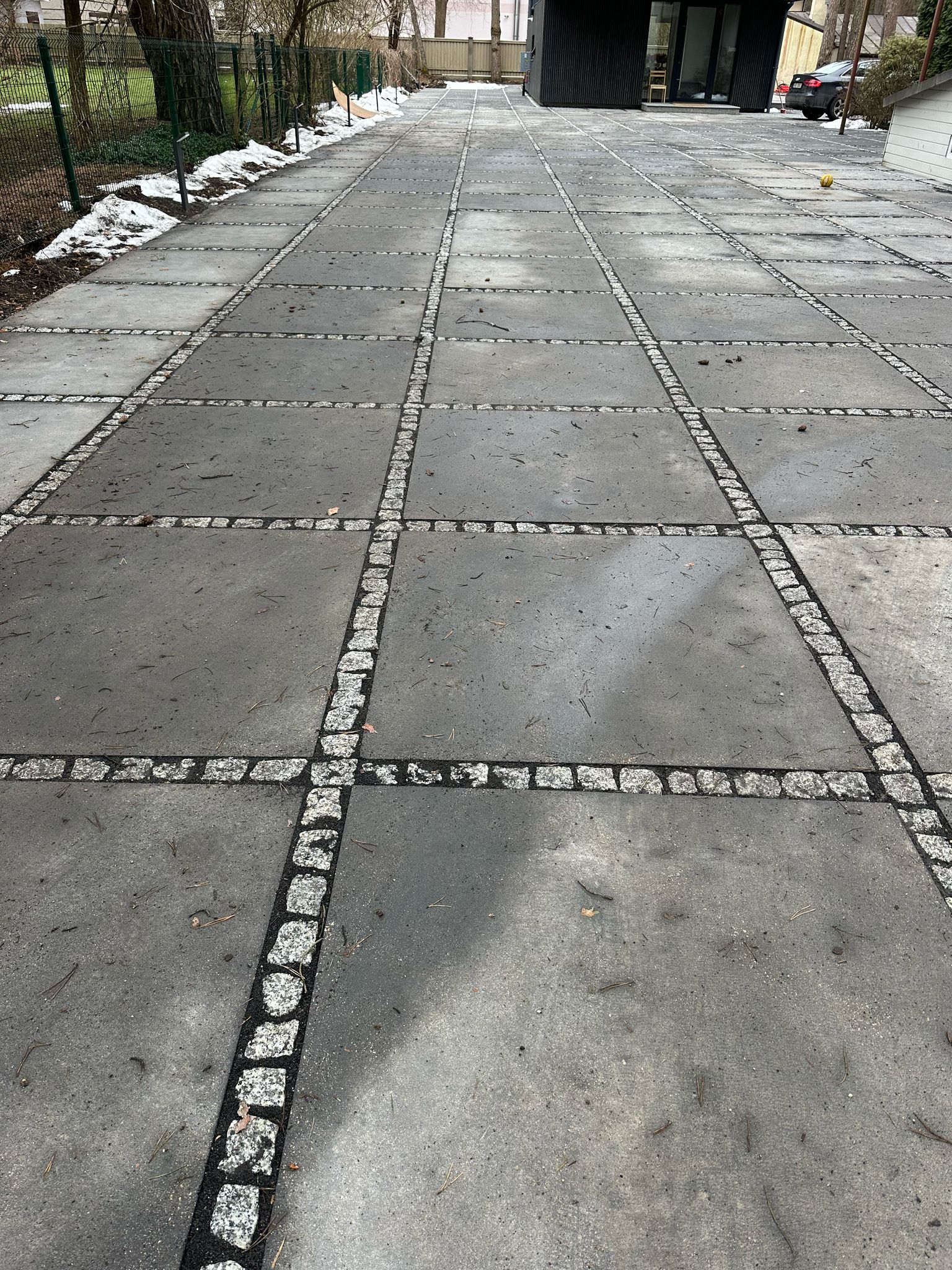 Mežaparka privātmājas teritorijā ieklātas LAT SLABS 1000 x 1000 x 100 mm betona dekor plāksnes, nodrošinot izturīgu un estētisku segumu, kas harmoniski iekļaujas apkārtējā vidē.
